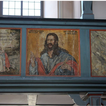 Die 31 Bilder in den Kassetten der Empore wurden 1948 bei Renovierungsarbeiten freigelegt. Wer die Porträts der Apostel und die biblischen Szenen gemalt hat, ist nicht bekannt. Jedoch müssen zwei Maler daran gearbeitet haben, denn die Farbgebung und die Darstellung der Gewänder unterscheiden sich erheblich von denen der Apostel. Sicher ist, dass Pfarrer Jodukus Kepner das Jesusportrait gemalt hat.